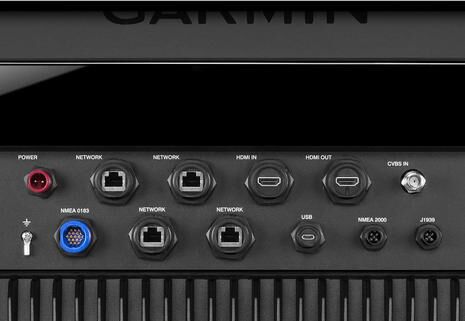 Talk about connectivity – check out the backside of an 8600 MFD and also understand that these displays support both WiFi and ANT+ wireless protocols. Note that the four Ethernet ports make this MFD an able network switch and that the HDMI IN and USB ports mean that this display can show and control a touch command charting program running on an onboard PC (or any other PC program).