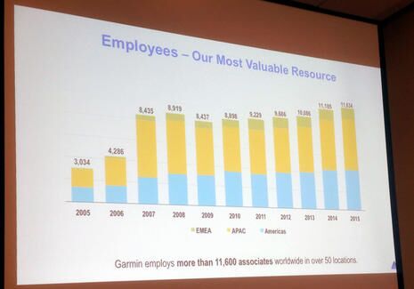 Talking about huge, Garmin is now up to 11,600 employees according to a presentation we received, and a lot of those are engineers. I believe that’s a bit scary to the marine electronics competition, but then again marine is still a very small part of what the company does, and Garmin no doubt feels small compared to, say, Apple and Google.