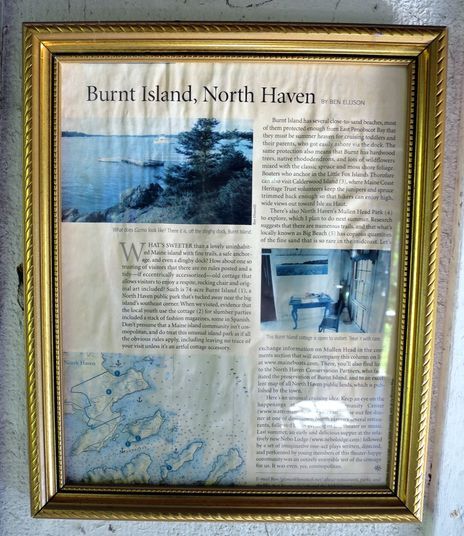 Finally, here’s an image from a recent shakedown cruise to the Burnt Island public park I once enthused about in Maine Boats, Homes & Harbors. Someone has sweetly framed my article and hung it in the unusual little cabin I had discussed and photographed – an honor I got to enjoy with Gizmo anchored down the shore in nearly the same spot as 2010. Is that meta or what? And when are you coming to cruise beautiful Maine? I’ll probably be working on installs and bug control at my Camden float.
