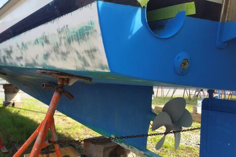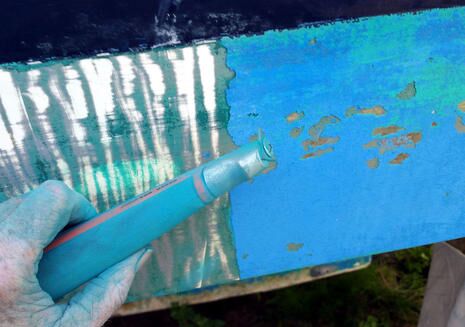 It’s almost funny how much I came to regret my old school “more is better” ways. After the Pettit home office agreed to let me try Hydrocoat Eco again — plus a further experiment described below — their New England Field Tech inspected Gizmo and pronounced her unfit for testing unless much of the old paint was removed. I was a bit chagrined until I looked again myself and realized how totally oblivious I’d been to the effect of multiple layers and a long drying period. Water-based Hydrocoat is particularly good at going over old paint because it doesn’t contain traditional solvents, but sticking to paint that’s falling off does not make for a fair test. (Incidentally, the lack of solvents can help boatyards stay under the maximum total VOC emissions being imposed in some locals.)
