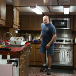 A passageway leads forward to the saloon and galley. Stairwells to starboard lead below to 10-person sleeping accommodations, as well as access to the engine room. As you would imagine, the fit and finish of these spaces are appropriate to the boat’s purpose, prioritizing function over style. Her guest accommodations consist of bunks in shared cabins. Because she is a government asset, entrance to the engine room is limited to the ship’s crew. However, I was able to peer through the explosion-proof door and glass to see Hogarth’s two immense Caterpillar diesels at work. Her saloon and galley occupy the forward end of the hull, and she is finished in the style of a working ship. There’s a galley, a beverage bar, and two large fixed tables with enough seating for the crew and scientists. About this time in my tour, breakfast was ready. A choice of bacon and eggs, omelets, or pancakes were made to order. This was certainly the best (and possibly the only) breakfast I’ve been served while underway on a boat test.