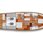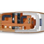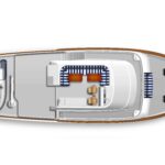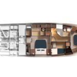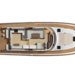 Belowdecks, the en suite master is placed amidships and features a king-size berth to take full advantage of the boat’s 19-foot, 6-inch beam. Additional highlights include twin John Deere 200-hp 4045 diesels, transoceanic range with an islands-friendly draft of less than 6 feet, and several interior layout options, including a three-stateroom, three-head layout with a convertible office area. Provisions for crew accommodations are also offered abaft the engine room. The first 60 Open is scheduled to launch in 2023.