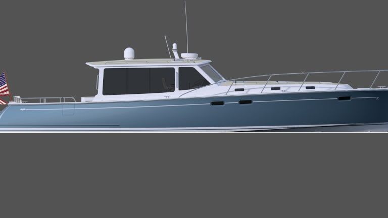 The exciting new quad-powered 53-foot yacht with Mercury Verados (due this summer) is expected to reach speeds of 50 mph while offering the benefits boaters enjoy from smaller sport boats: shallow draft, easy maintenance and easy handling around the docks.