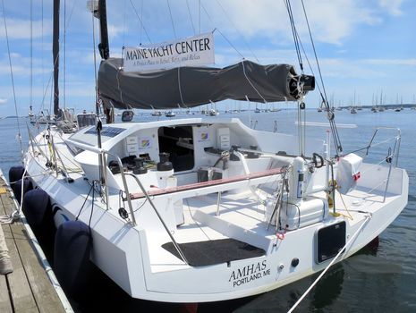 Single and/or shorthanded ocean racing remains a niche sport in North America, but it still seems weird that its current epicenter seems to be at the Maine Yacht Center just north of Portland (and nearly in the shadow of the iconic B&M Baked Bean factory). MYC, like most every yard up here, offers all sorts of storage and repair services — with Charlie Doane’s Lunacy a regular client, for instance — but it doesn’t take too many MYC blog entries to see how many extreme racers they’ve also been involved with.
