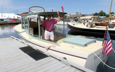 Finally, I missed photographing that young boater up in the wheelhouse of the CedarWorks play boat intently steering somewhere. But I did get to see him use the unusual exit with good form and then decorate the craft’s bow with a small flag he found somewhere. I don’t know him but sensed that he’s well along a good path. And what he doesn’t know yet — a happy truth that came up with friends at the show — is that youthful boating enthusiam can last for a very, very long time.
