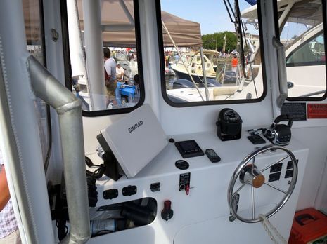 One of Dock Work’s main products is custom aluminum ramps, and you can see how neatly this expertise worked out in the power cat’s wheelhouse. Incidentally, that wireless remote next to the wheel runs the landing-craft-style bow ramp/door so this boat can be single-handed if desired. I gathered that the company will use Mica Lee to deliver and install ramps and floats, but I can picture island building contractors, mooring tenders, marine scientists, and many others lusting for the cat’s speed and versatility. Dock Works hopes to sell a few around Maine and then further afield, and I think they may succeed.