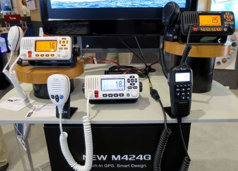 Note, for instance, the highly readable channel numbers on the new Icom M424G with its built-in GPS, white backlit LCD screen and optional matching CommandMic. I covered the M424G in January along with sister M324G when their (very) slightly different European cousins came out. But Icom America also had some interesting possible news about the future; absolutely no promises were made, nor dates set, but they do now think it’s possible to build a combination VHF radio and Class B AIS transponder that could be approved by the authorities.