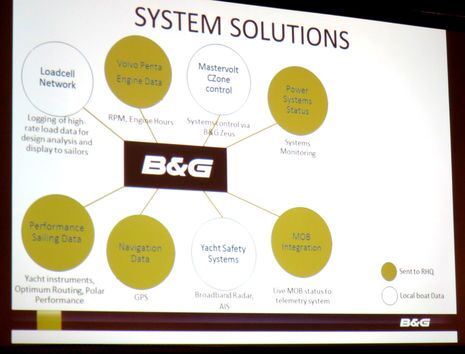 In Hawk’s Cay I saw B&G advancements I can’t talk about yet, but in Miami I learned about the system integrations on the Volvo Ocean Race one-designs at a press conference that included a Q&A Inmarsat call with Alvimedica skipper Charlie Enright while he was sailing hard on a South Pacific breeze. The navigation, safety, communications and power systems deserve a whole entry and will get one, but this slide suggests the mass of data being displayed on the B&G systems, including about 150 elements that are also streamed up to the Race HQ. Did you see that all six active one-designs are within less than 20 miles Distance to Finish (Auckland) after more than two weeks of racing?