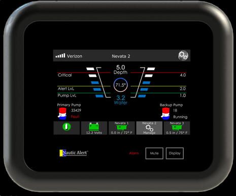 This is Nautic Alert’s own screen photo and I believe it’s showing the six-bilge-pump system diagrammed at the top of the entry. The three Nevatas should and could be named for the sections of the boat where they preside, but you can see how the primary pump controlled by Nevata 2 has failed, allowing bilge water to rise above the Pump and Alert levels, but that the backup pump is now taking care of it…all automatically.