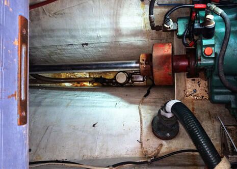 Lucky guy that I am, Gizmo’s semi-failed shaft seal remained dripless under about 7 knots, and so for a few days I was able to sit about where I took this photo (holding the camera beneath the prop shaft) and easily control a steady flow of water into the bilge. That’s how I became confident that the Nevata can consistently measure water depth to 0.1 inch accuracy, and I also watched several times as it responded instantly to the (customizable) 2-inch pump-on level by running the pump exactly to when it started sucking air.