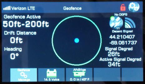 So it’s no surprise that the Nautic Alert geofencing is also sophisticated. Specifically, the software watches the GPS receiver’s perceived accuracy and adjusts the minimum geofence radius set to avoid false alerts. Of course, I had to push that concept, too, as a reliable remote anchor dragging alarm would be very nice indeed.