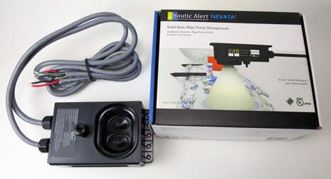 There are two main hardware components to the full Nautic Alert platform, and the Nevata bilge pump switch and controller can be used by itself. My photo shows the ultrasonic sensor that constantly watches the water level, and also the heavy duty cables that connect to a boat’s 12, 24 or 32 volt supply and to the bilge pump. Actually that’s the $549 Nevata 2R model that can manage two pumps, but in either case replacing existing pump switches should not be hard, and this one is not just solid state. It’s intelligent, faithful, and well spoken.