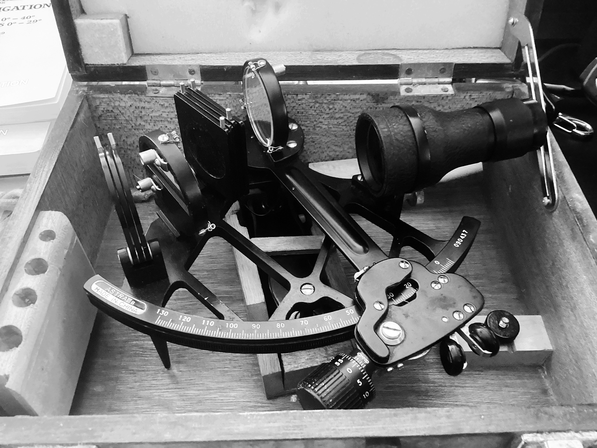 My role is to serve as an “analog replacement for electronics.” I can find latitude at noon using a sextant, plot a three-star fix, and get a line of position from a moon observation without too much trouble.