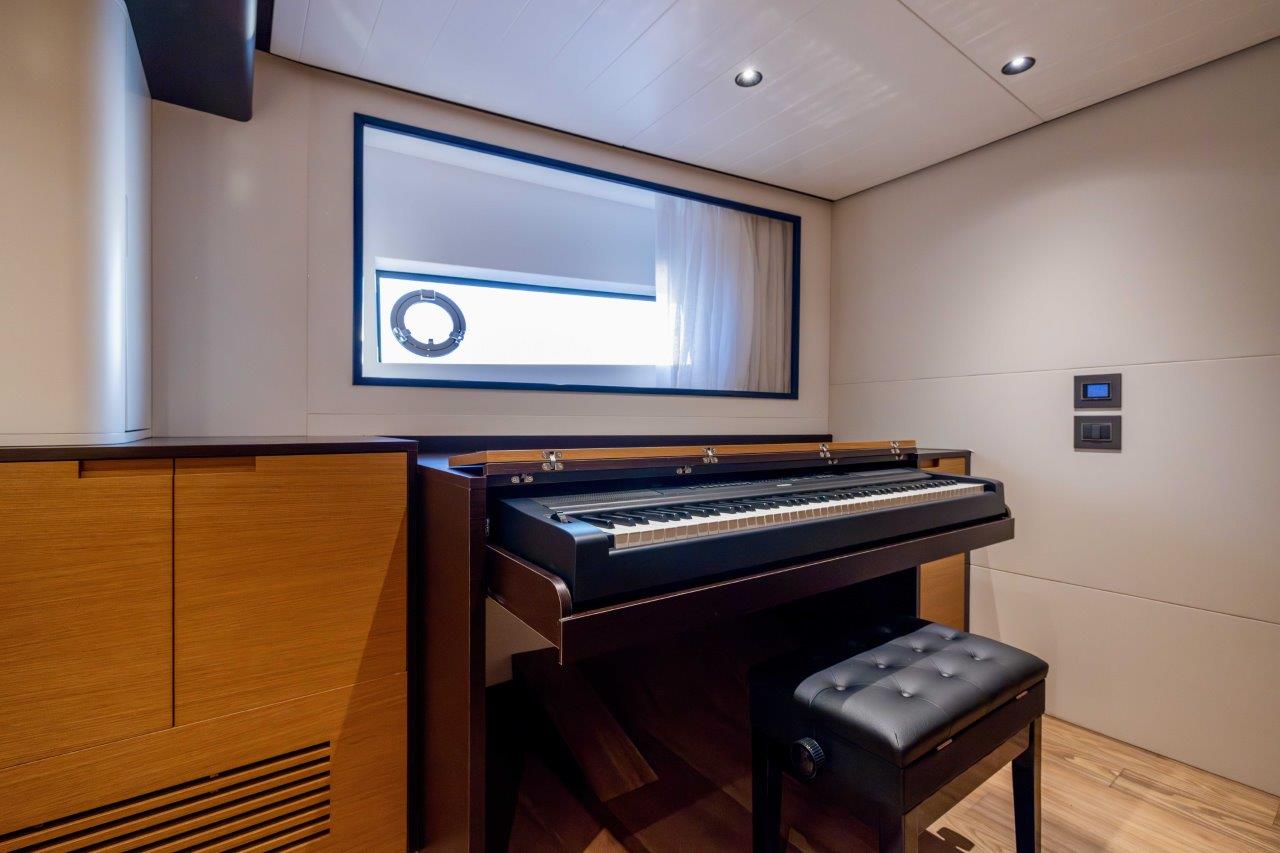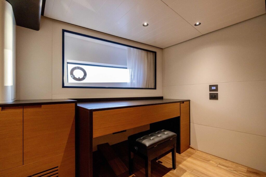 In a first for Apreamare, the Maestro 88 is graced with a semi-displacement hull. When matched to her standard power package—a pair of 1,600-hp MAN engines—the 88 is capable of 18-knot cruise and a top speed of 23 knots. Back off the throttles to 10 knots, and her range is estimated at 1,000 nautical miles.