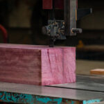 Before heading home, I decide to track down Nelson, who is working away in the contemporary boatbuilding space on his favorite project of the year, the Periwinkle design: a glued lapstrake sail/rowboat. He’s most excited about the boat’s 16-foot birdsmouth mast and is now working on the parrel beads for the gaff spar rigging. I watch as he turns the beads on the lathe, then separates them with a flush-cut saw before drilling out the center for the rigging line.