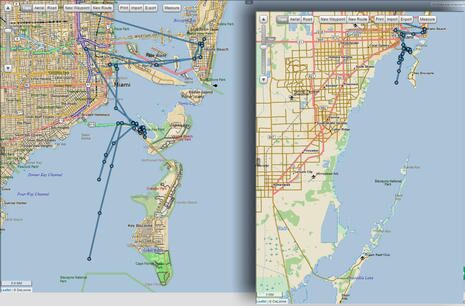 While we’ve barely begun 2016, the state of recreational marine radar is entirely different than it was in 2015. The simultaneous introductions of Furuno and Garmin solid state Doppler radars in Miami was a stunning coincidence, but the bigger picture is that all four major brands have now embraced solid state technology and a major transition is underway. During the show I spoke with a lot of product managers as we checked out their particular new radar underway, and my (partial) track map above (in two scales) may help readers to better understand the screenshots I brought home.