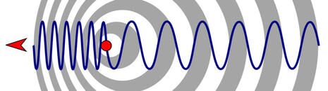 Going further back, the classic explanation of Doppler effect is the way a train whistle appears to sound higher pitched when the train is coming toward you than it does when going away, even though it always sounds the same if the train is stopped or you’re aboard (hear it here). The train’s motion changes the frequency of the sound waves unless you’re also moving in the same direction and speed.