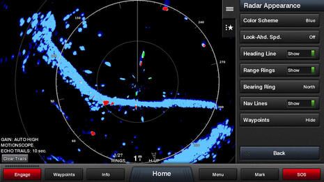 Again and again, and nearly instantly, the Doppler lit up boats headed toward us and faded them back to green when they passed us or turned away. When you see it working in clear conditions where you also see exactly what the closer targets are doing, the Target Analyzer display makes complete and simple sense. Then, of course, you start imagining what this newer, easier level of situational awareness would be like during a light-crazy Miami night or in a deep Maine fog speckled with ledges, nav aids, and fast dancing lobster boats.