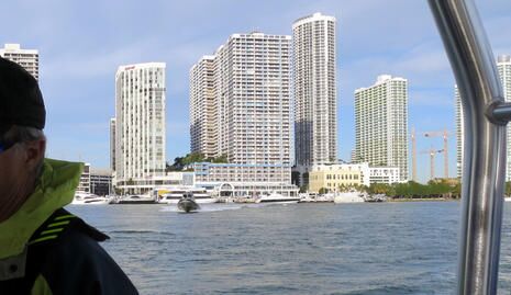 Notice the lines of fixed targets seen on this screen and others in the series. I’m told that they are poles marking some sort of protected area, but I can’t find them on any chart. At any rate, they showed up quite well on all four of the solid state radars I experienced in Miami, and that’s great. But only the Doppler-using radars offered some assurance that they were fixed, and when a boat occasionally moved through that area (as seen above), Doppler spotted it faster than any crack radar operator I recall sailing with. And those of us operating the NXT or Fantom involved didn’t have to do a darn thing except to mentally integrate the clear and valuable target motion info into the bigger scene unfolding around us. Game changing?