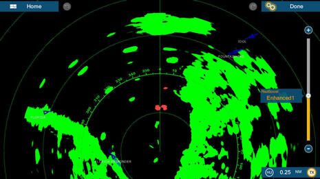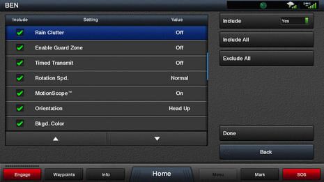 But all these radars are just one (important) part of larger MFD systems, and there are many factors to picking the best one for any given boater (though it’s hard to go too far wrong at this point). That’s a much bigger discussion, but since I already showed some of the many controls Garmin has included with the Fantom and its latest MFD software, let me go a little further. While I probably over fiddled with those controls, as you might notice in the multiple radar palettes, as we ended the demo I wistfully chattered about how it would be nice to save multiple radar setups. That’s when Ryan Schmitz showed me the elaborate screen below. It’s is under the new “star” tab you can see on the Garmin shots just above, which means easy access for power users, easy “nevermind” for others.