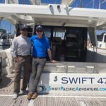 With dolphins trailing in the stern wake ST47 was met by an escort vessel led by Bob Denison, President and Founder of Denison Yacht Sales. Cruising at a smart 22kts both vessels entered Marina del Rey and made their way to the Denison dealership docks. After introductions and a warm dockside welcome, captain and crew secured their leg of the Swift Pacific Adventure while cleaning crews boarded in preparation for her Memorial Weekend cruise to the Channel Islands with world famous photographer Doc White, his wife Ceci and Barrett Canfield, owner of the South Coast Yachts Beneteau dealership located in San Diego.