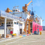 On the day of their departure for their 2018 deployment, media was invited aboard the Healy to get a sense of the year’s scientific purpose. With only a few hours left before departure, the core science crew that serves aboard the boat was installing software, setting up servers and crossing last minute items off their to-do list. USCG crew were removing lines, stowing last minute science gear on the aft operations deck, and hauling shoreside connections back on board.