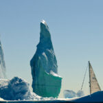 Call it an insane addiction, yet we find that stalking icebergs is cool (literally), entertaining, enlightening, and leads to high adventure. After three summers of weaving through and avoiding collisions with ice in Labrador’s waters we developed a voyeur’s fondness for this transient Earth Art. The icebergs off Labrador often recall Henry Moore’s pieces, their textures, turrets, and needles smoothed by winds and waves during the long voyage from their birth places in the far north. To see them at the very freshest, most complex shapes we pointed the bow at the mid-coast of western Greenland.