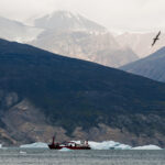 Greenland attracts adventurers on boats. In Aasiaat, three yachts were getting ready for the Northwest Passage, but you never know who else could lurk within the archipelagoes on this vast coast. In the evening, Dodo’s Delight II powered in. All of 34 feet long, it has served Bob Shepton as a chariot for high-latitude voyages, Arctic, Antarctic, Cape Horn, Northwest Passage. Reverend Bob, 80 now, and four extreme rock climbers called The Wild Bunch, just finished several firsts on some impossible walls in western Greenland—just a warm-up for a crossing to Baffin Island and more climbing. Armed with a flute, mandelin, a squeeze box, a harmonica, and spoons, they put on a rousing concert when aboard our “voluminous” 44-footer.