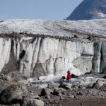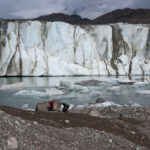 One arm of this network of fjords leads to Sermilinguaq and its extensive glacier. The snout of the glacier has retreated and drops most of its ice into a sort of small lake. To find proper depths for anchoring we had to come close to the submerged parts of the moraine, where the anchors held well in mud and sand delivered by two rivers. The glacier made its own weather—cooled in the night, the air at dawn was wild with wispy low clouds swirling in the golden light of sunrise.