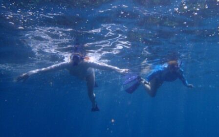No sooner than we entered the water, a 6-foot nurse shark swam right under us. This ominous yet harmless creature was just feet below as we looked down into his eyes. While he was totally uninterested in us, we were fascinated with him. He was such a contrast to the delicate and bright reef fish around us.