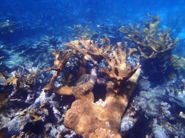 We proceeded over the large stag horn coral that grew up off the rocks and white sand bottom below us.