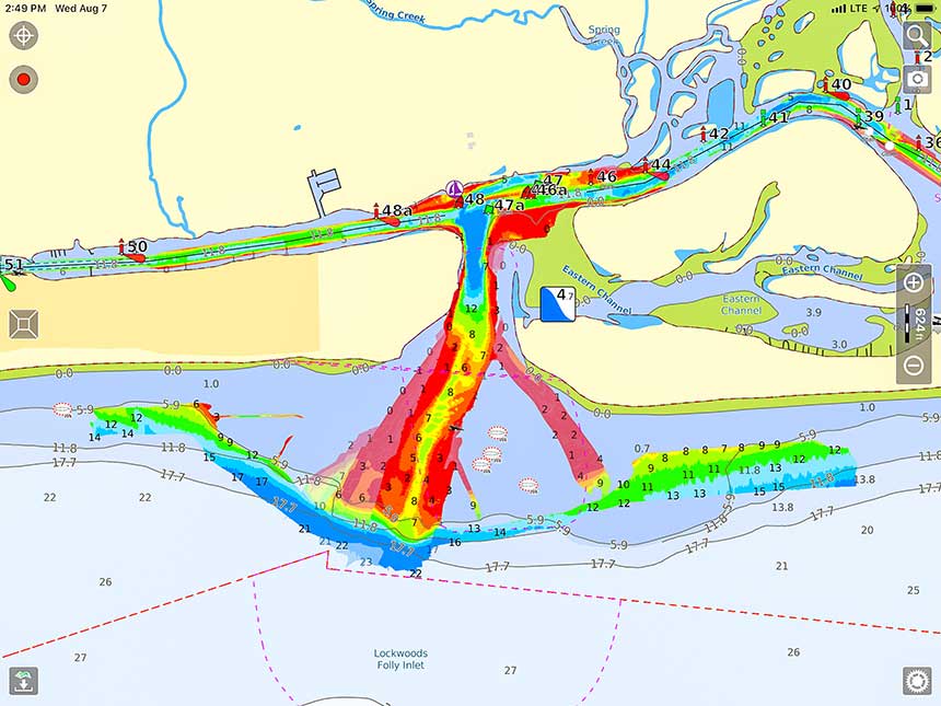 Information about areas prone to shoaling has always been shared among boaters, but historically, there was not an efficient format for sharing on a predictable basis. Several years ago, crowdsourcing apps began to let boaters post current conditions. Soon after, that crowdsourced information could be overlaid on electronic charts by way of apps. This access to changing conditions as they exist has allowed countless boaters to navigate the ICW with less fear of running aground.