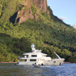 VivieRae, the Nordhavn 96, anchored off a remote island in Vanuatu.