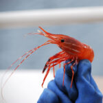 Examining the days catch from a prawn trap.
