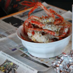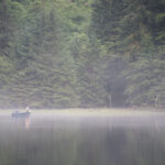 CRAIG HOUGEN & MARK TANNERWe spent several days anchored here—kayaking, exploring the corners by dinghy, setting and checking crab and shrimp pots, and enjoying the antics of the large black bears that came daily to feed along the grassy verge at the head of the inlet. We relocated one evening to Two Mountain Bay to escape a strong northwesterly wind along Botany. As it always does, crew-change day arrived unbidden, and we moved to the little bay just outside Botany Inlet to meet the float plane chartered out of Sandspit. We were sad to see Joe go, but happy to meet other friends, Dave Maxwell and Mike Kinahan. I was able to get some fabulous drone footage as Brian kayaked down Botany Inlet, and while the salmon and halibut eluded us, the crabbing and shrimping kept us well supplied with seafood.