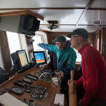 Darkness fell as we neared the midpoint of our run, and the sky overflowed with stars. Nighttime bridge duties were uncomplicated—mainly we monitored our course to be sure the autopilot kept us on track and kept another eye on the radar and AIS data to identify any potential traffic in the area. Of the few ships we did see during the night, none approached within five miles of our boat. Of course, keeping an eye on the ocean for large debris is standard procedure at any time, but as we moved across a quiet ocean under clear skies, this was not a major concern.