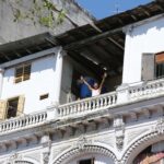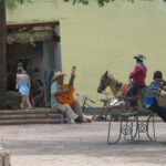 Strumming guitar on the festive and vibrant streets of Havana.