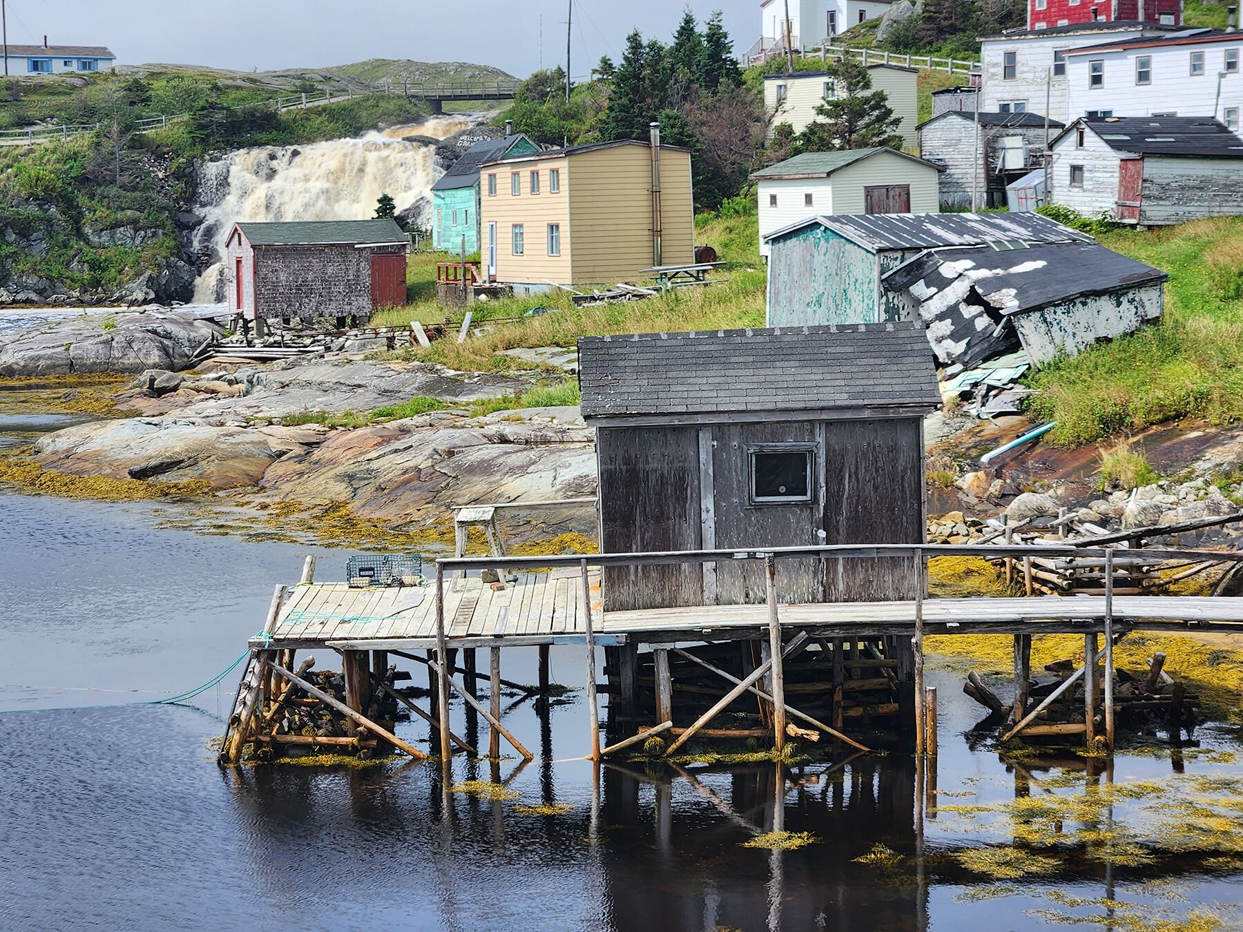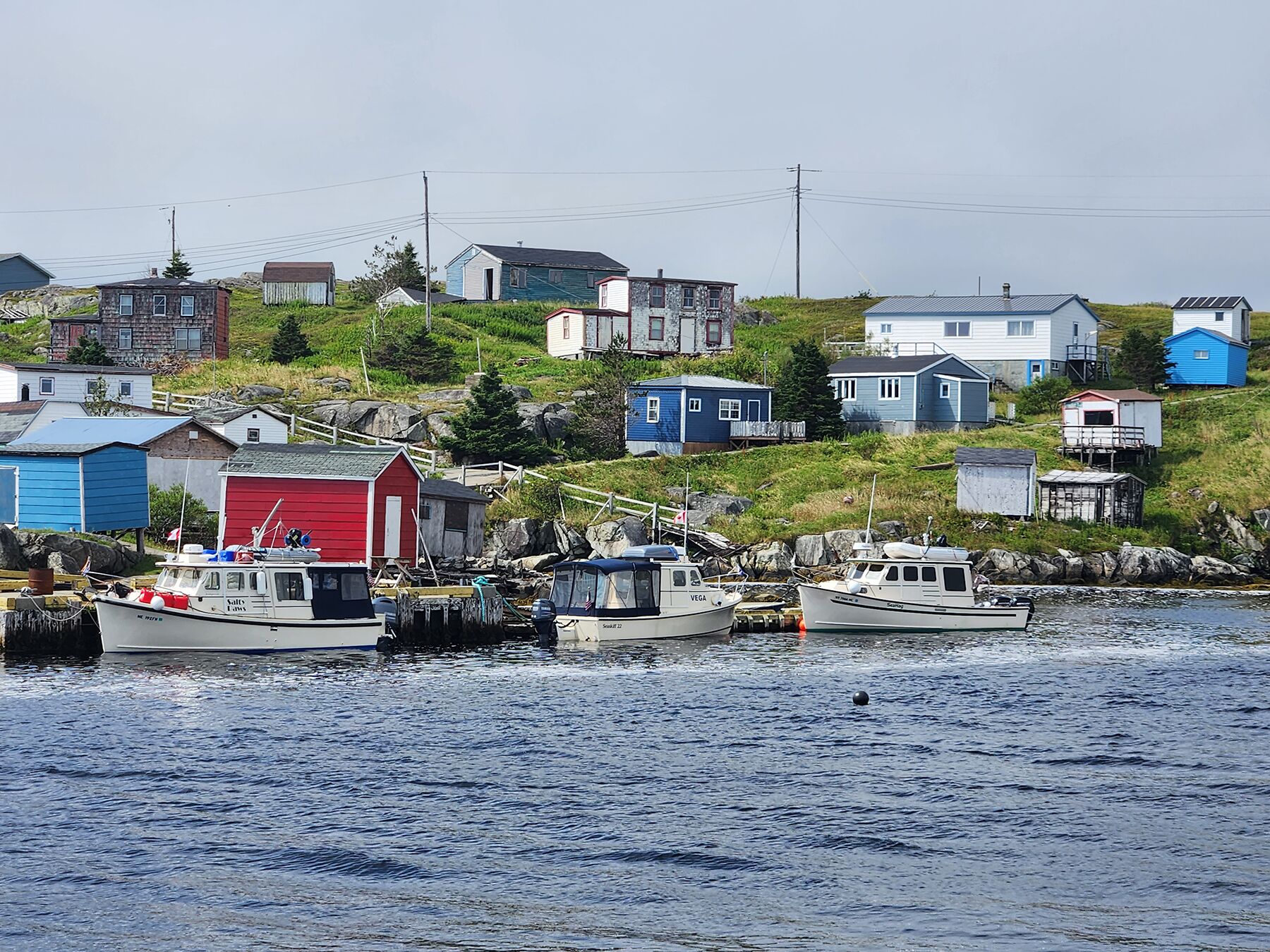 Robert RussellAt Harbour Le Cou, we anchored in the north basin beyond the shallows. A waterfall roared beside us (they are everywhere) as we held over because of stormy weather. We then made our way to the abandoned outport of Grand Bruit. It was eerie walking along the sidewalks, imagining how life would have been when it was a busy fishing village.