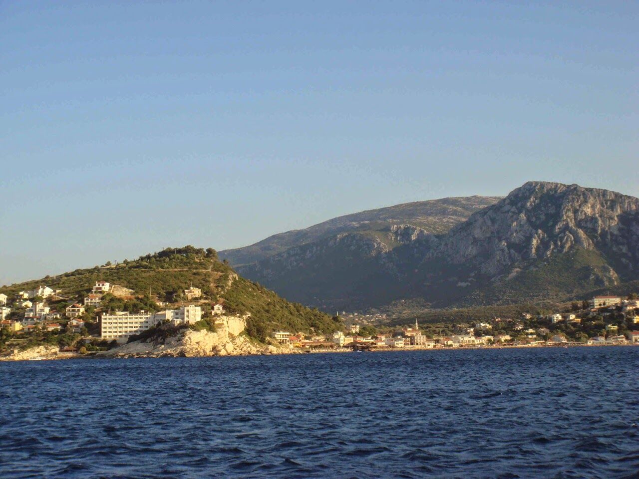 After coffee, we are underway for Karaburun. It takes about 3 hours to get there, and we have to dodge many fish farms, a sailboat that could not seem to be able to make up its mind, and a motoryacht traveling 20-plus knots that had no sense of what an appropriate distance between boats that are approaching each other should be. We anchored south of Buyuk Ada (Big Island) in about 13 meters of water. The weather is not supposed to get bad, but if the wind picks up, we will move and anchor in front of the city itself.