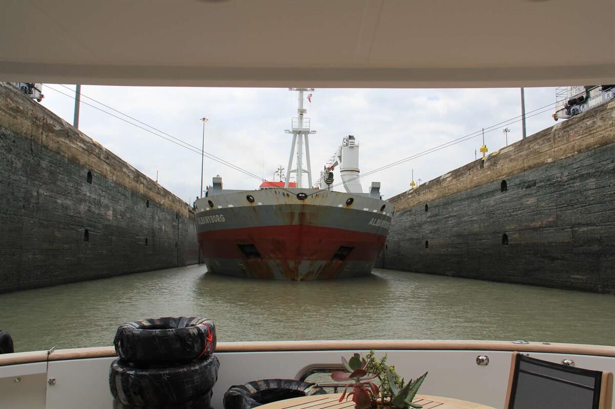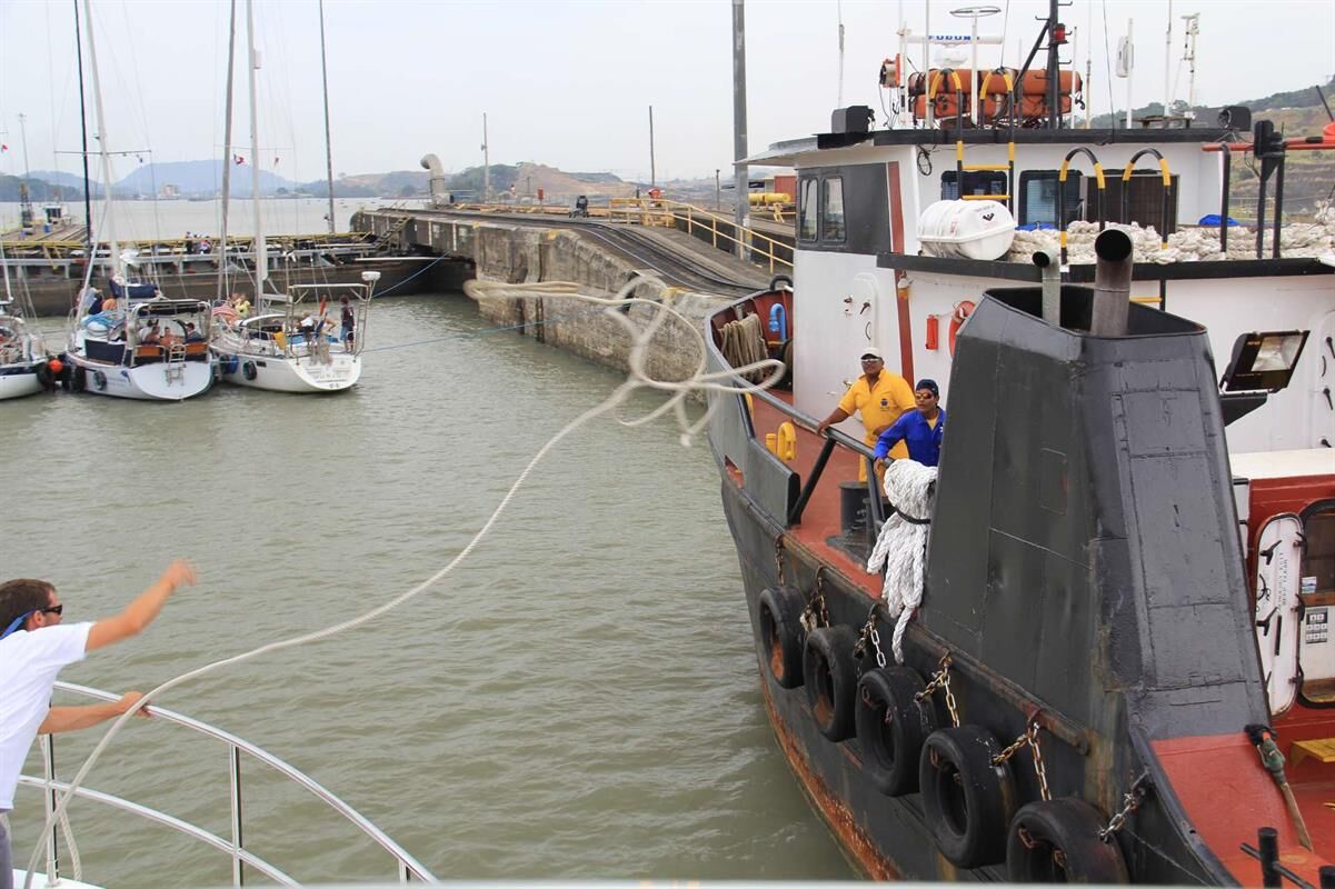 Our transit through the canal is scheduled for Monday. Before leaving we needed to get four 125-foot lines and 12 fenders (tires wrapped in garbage bags) aboard Argo. We hired a line handler named Stanley to assist with the transit. We were instructed to leave the marina at 1330, anchor in Limon Bay and await a call on VHF Chanel 12. As we were arriving on station, a call came and told us were to meet the pilot boat. Around 1400 a pilot (Riccardo) came aboard, and he was a very pleasant, talkative fellow.