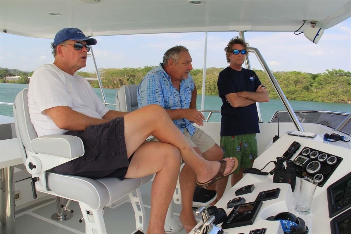 Today, we are expecting two friends, Mark and Dash, to join us for the trip through the canal. Mark is an editor at PassageMaker Magazine, an important magazine for people like us who wanted to learn about owning a boat and cruising the world. Before we bought Odyssey, I looked forward to every issue and read it cover to cover. It inspired me to start our own odyssey. So when Peter Swanson, Mark’s boss called an asked if they could do an article on our passage through the canal, we thought it would be a lot of fun. With camera and note pad in hand, Mark came aboard early Sunday morning, and Dash joined later in that day. Dash is an old friend from the 80’s, when he and I attended professional meetings and executive education courses together. We hadn’t seen each other in about 25 years, and although still in business, Dash winters at his home in Boca Del Toro, about 100 miles north of where we are now.