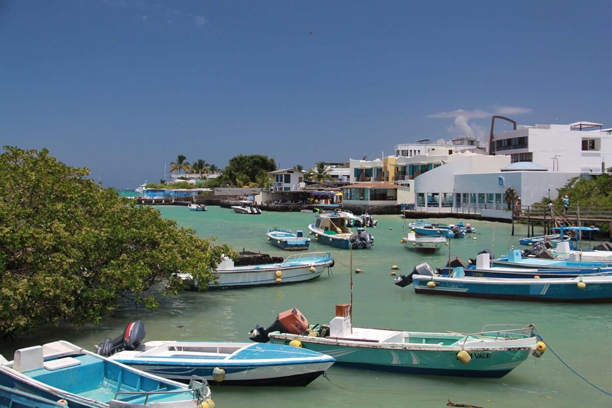 Later that night we headed out of the Gulf of Panama and past many large ships coming and going to the canal. As we entered the Pacific Ocean we encountered moderate ocean swells from the south. For the balance of our five-day passage we encountered southerly winds between 15 and 20 knots, sometimes a little more on our port bow. In all but one of the days, the seas were moderate (6- to 8-foot seas with a fairly long moment) and pleasant, except for one day that was a little uncomfortable. One of the interesting things was the variability of the ocean currents: we changed course to avail ourselves of a more favorable ride. Sometime we would be pushed along at 8 to 9 knots, while at others we crept along at near 6 knots, all at the same engine speed and power. The difference is strictly caused by the direction of the ocean currents. This area of the ocean has four large currents converging at the Galapagos, which creates a very confused sea. On the fifth day we crossed the equator and made landfall at Puerto Ayora on the island of Santa Cruz in the Galapagos.
