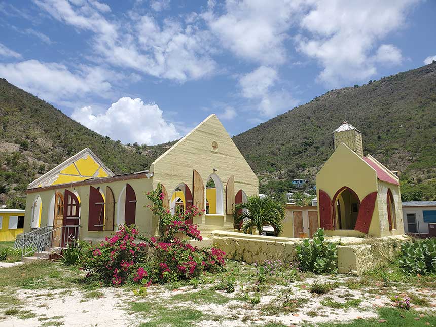 Other visual reminders were sunken and beached boats waiting for removal, especially at Trellis Bay, with about a dozen, and the pitiful roofless church at Jost Van Dyke, where, by the way, every bar already had been repaired or rebuilt to the highest standards—a testament to island priorities.
