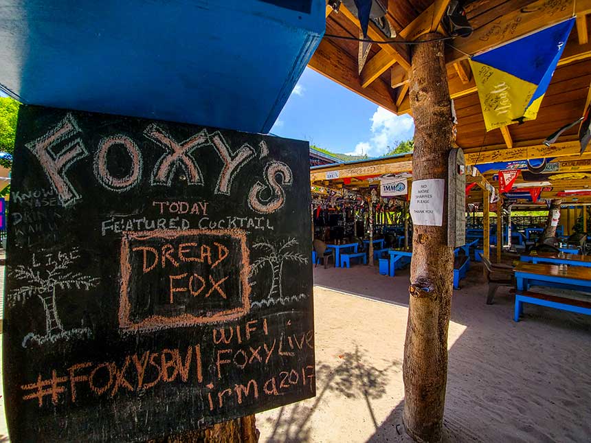The next day, we proceeded to Jost Van Dyke, home to Foxy’s, the mother of all beach bars. The cocktail of the day was the Dread Fox, which could have been the Dead Fox, as the place was uncharacteristically quiet compared with my last visit for New Year’s Eve two decades ago. (Locals tout the bar’s Old Year’s Night party as the world’s third best New Year’s celebration, after Times and Trafalgar squares in Manhattan and London.)