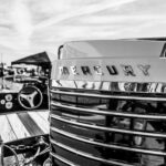 Ken Bassett-designed speedster, ‘Miss Mile-a-Minute’ and a detail shot of her stunning short shaft outboard engine, a 1961 Mercury 800 FGS.