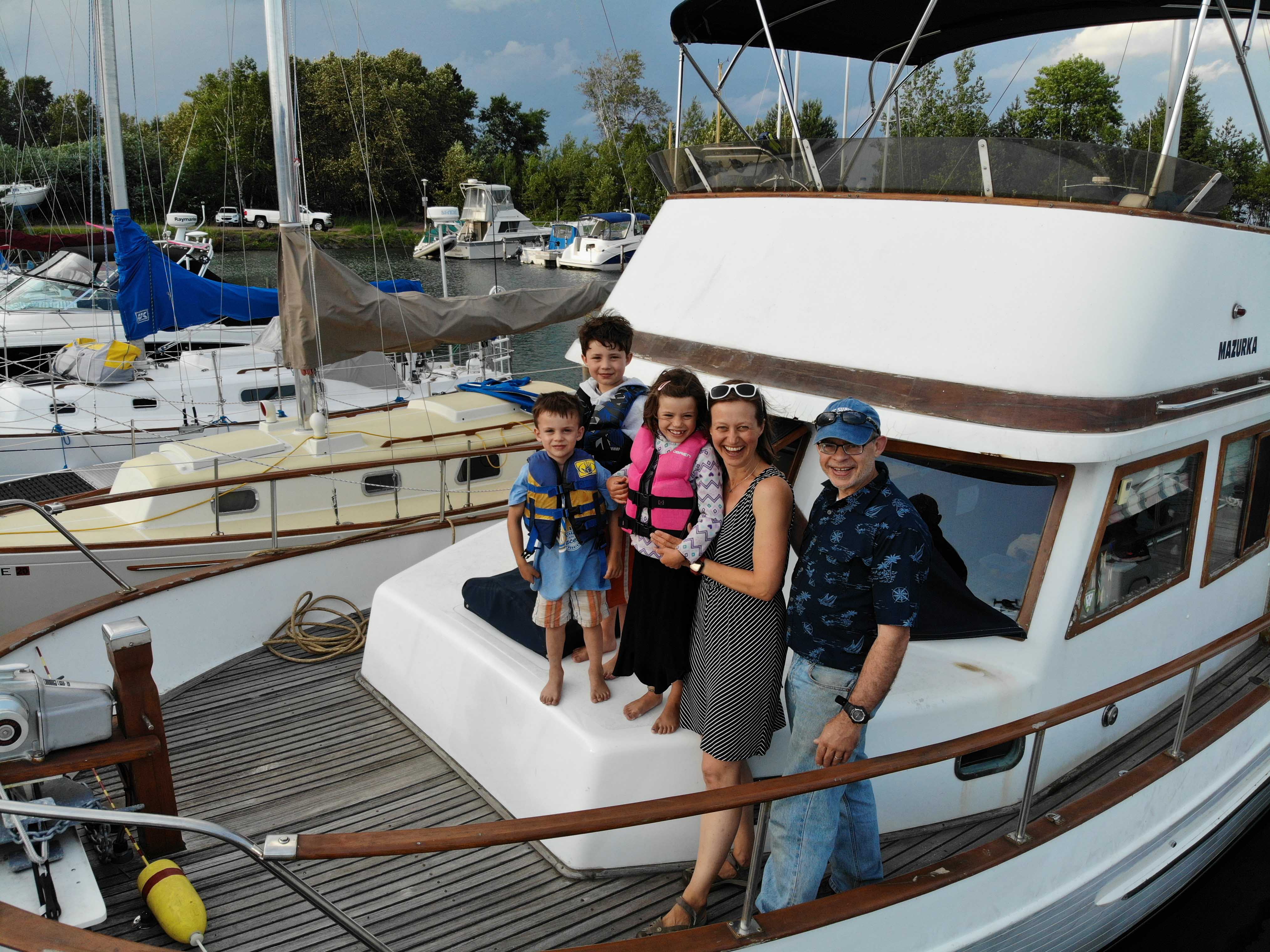 I grew up fishing the backwaters of the northern Mississippi River in my dad’s 12-foot fiberglass boat. The thrill was running the outboard motor. I loved being on the boat, watching the water race beneath me. In my early 30s, I was living in Chicago when I met my husband, Mark, who was living on his 38-foot Marine Trader trawler, Mazurka, right downtown. He is from Michigan’s Upper Peninsula, and living on a boat was his way to find space in such a big city. I fell in love with him, and the boat.