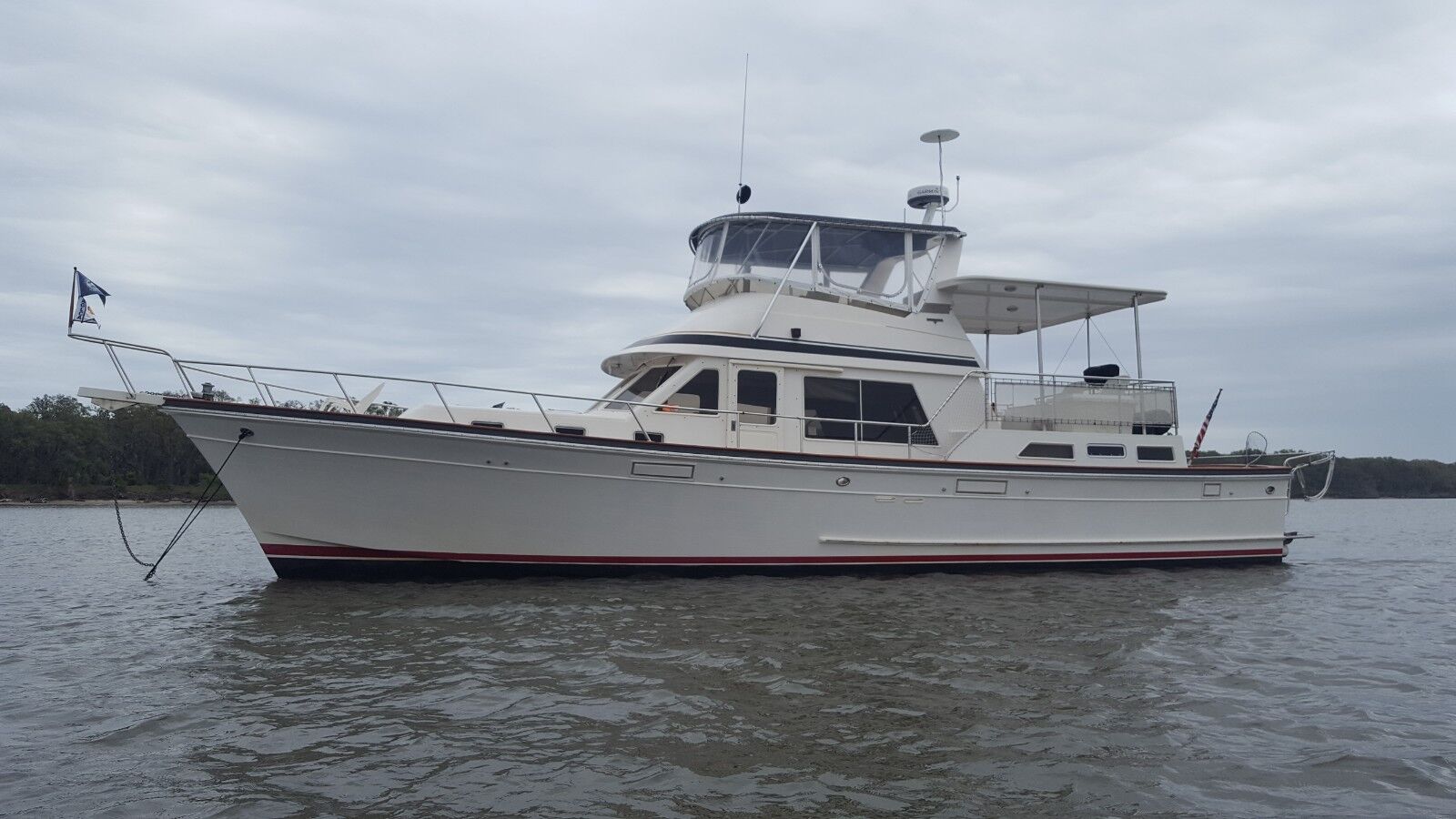 Katie and I looked for our current boat for four or five years—too many boat shows and online. We kept a notebook with comments about each viewing. Among the things we wanted was ease of walking around the sides without shuffling our feet or turning sideways. We also did not like ladders for the upper helm because of our dog (yes, Kilo had input). And we wanted a propane stove. After seeing a 48-foot Offshore Yachtfisher online, we focused on that model and, lucky for us, there was one for sale about 10 miles from home.