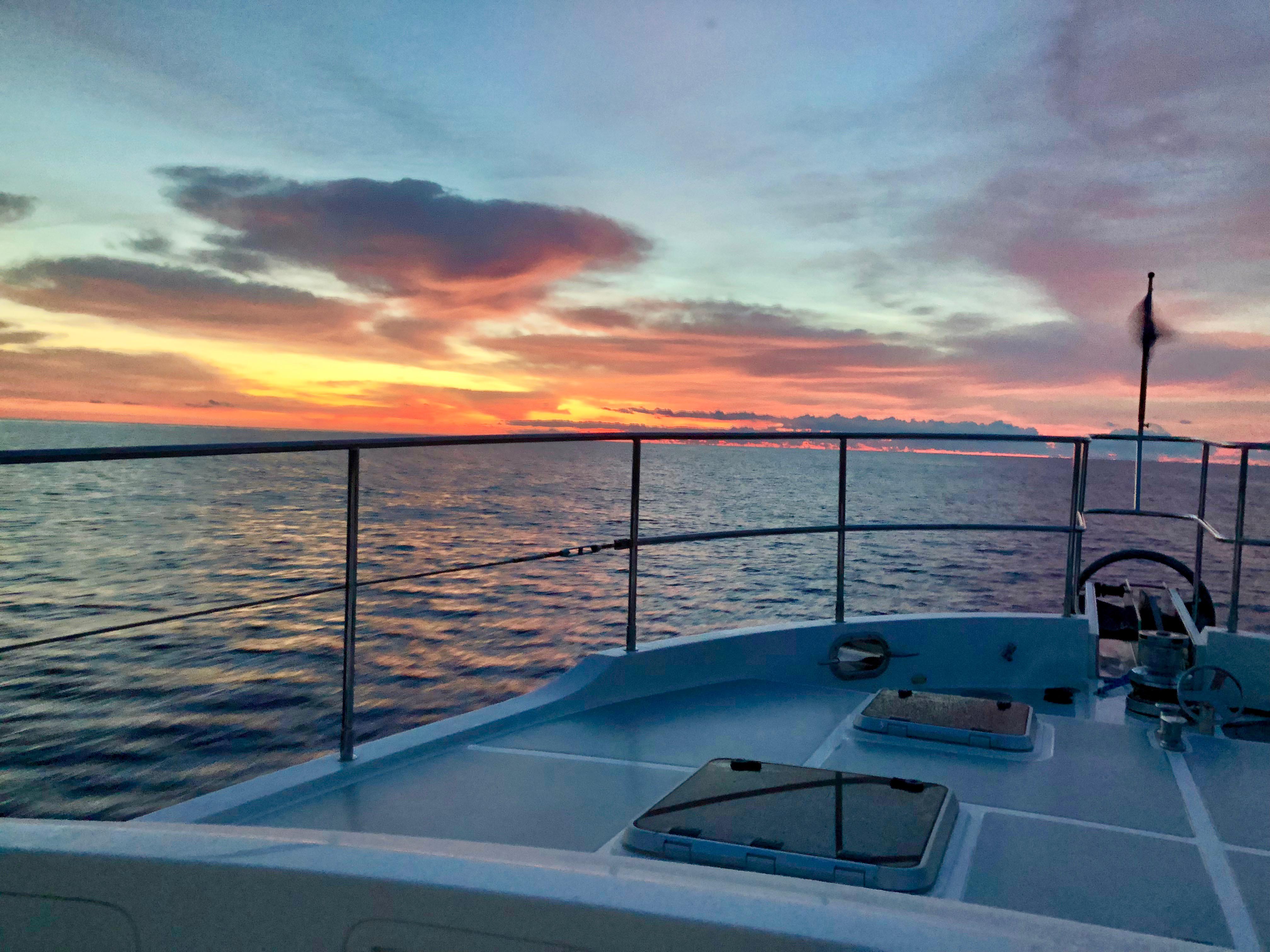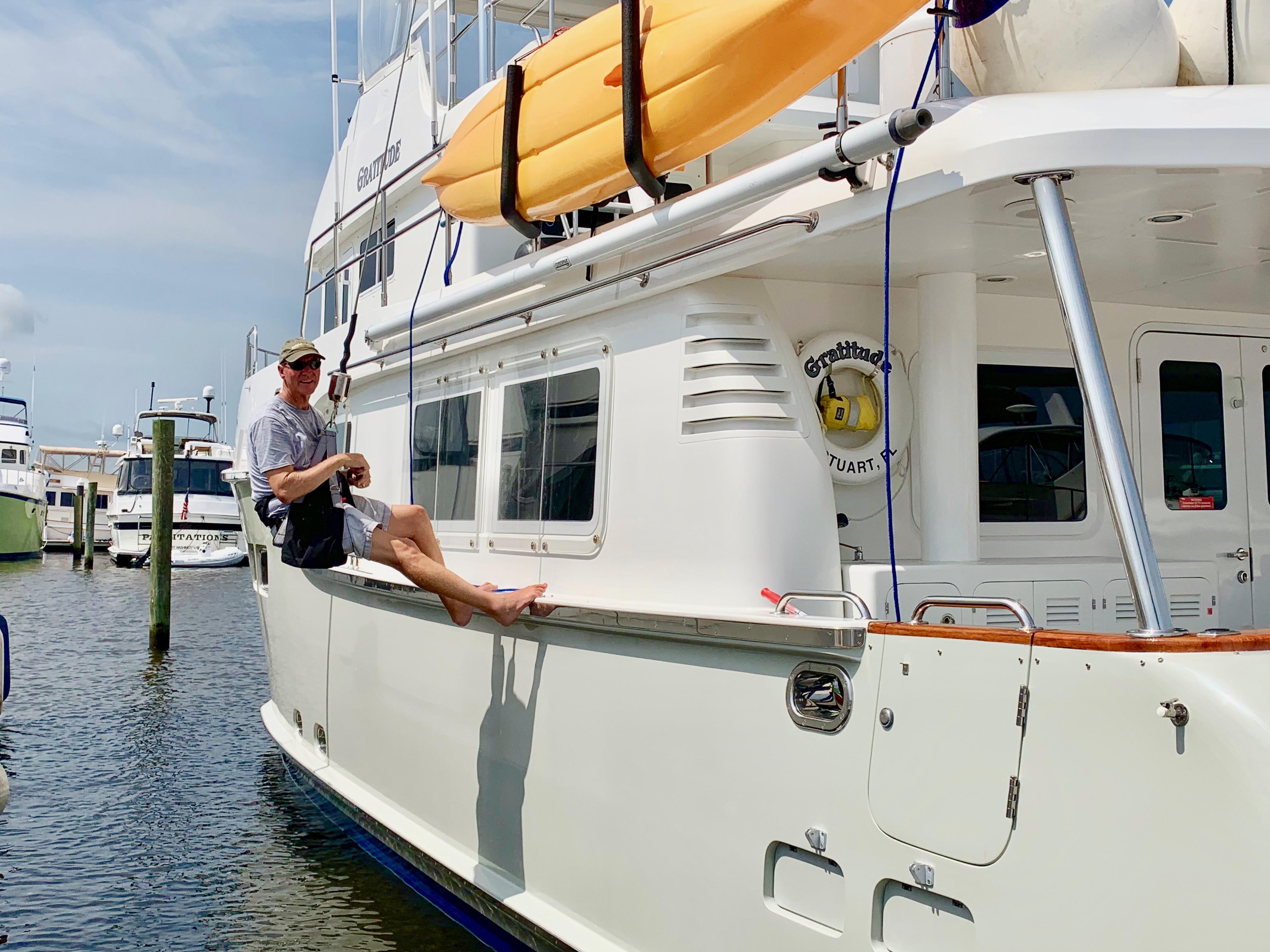 There wasn’t much time to worry about such things; the inlet from our hometown of Stuart, Florida, has a few high spots, so Gratitude, full of fuel, water and provisions, needed as much water under her keel as possible. It was crucial that we left on time on the high tide. So, we ran down the dock, kissed friends and family goodbye, and reminded ourselves to just breathe through that first hour on board. I got busy stowing last-minute items, locking lockers, and cleaning vomit, while Alec checked oil and transmission fluid, and transferred dock power to ship power. We were ready.