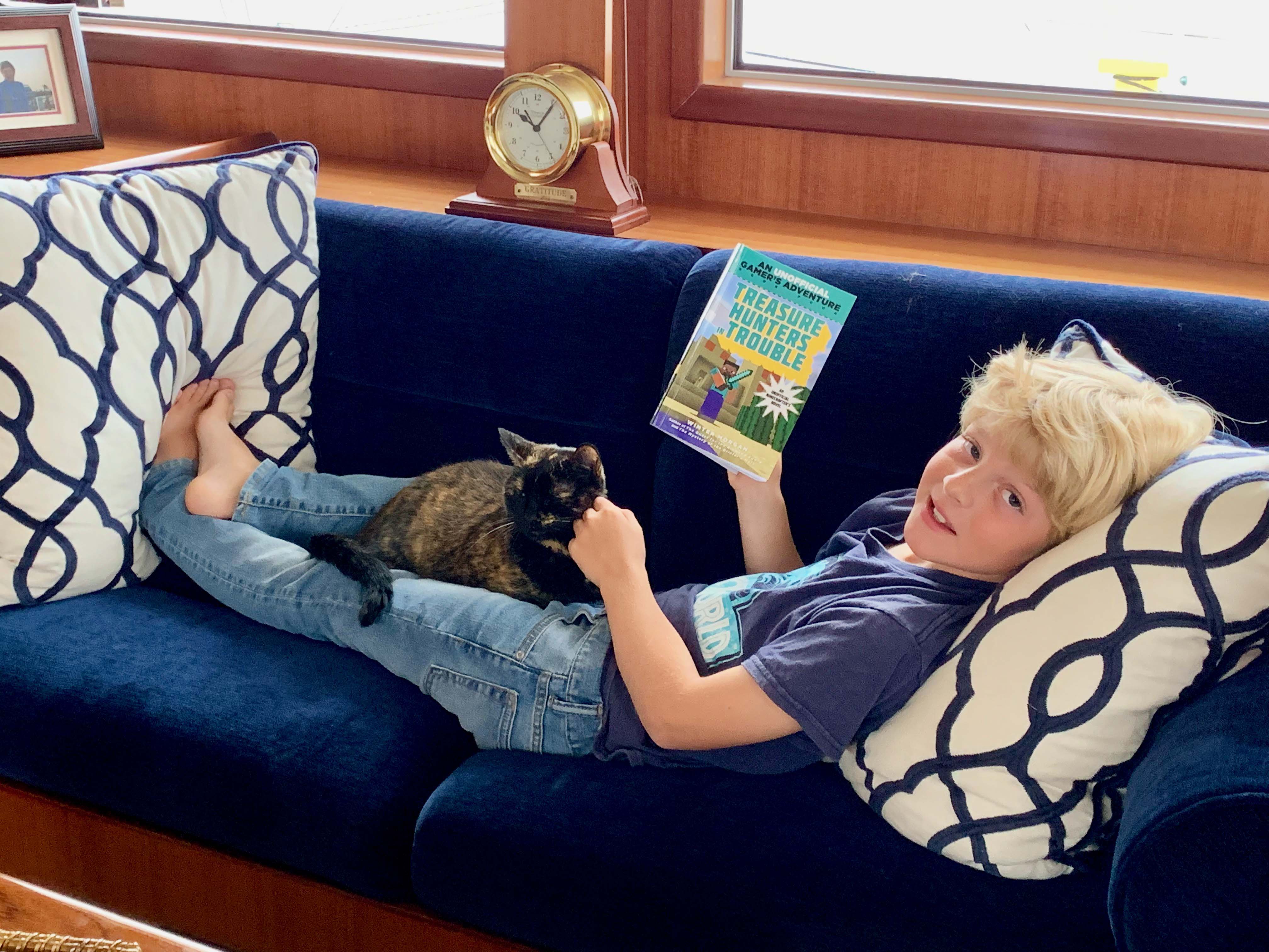 The actual day of embarkation on May 16, 2019, looked a little different. The only occupants of the boat were our two cats, Pratt and Whitney, who dined on, and then vomited up, the bon voyage gift of flowers.