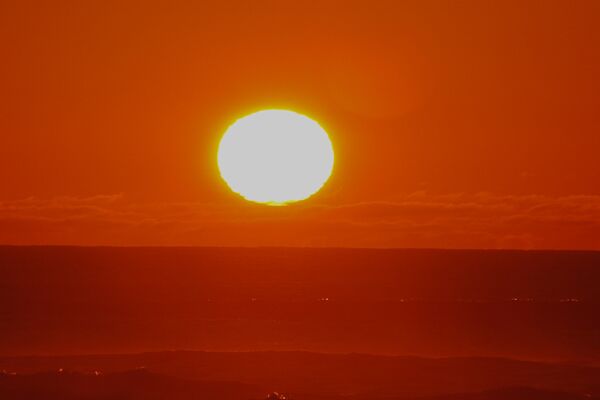 The sun makes a more interesting photographic subject as it sets because it is seen through more air molecules and more dust than when the sun is high. This makes it look red and cuts the contrast down to a manageable level. This also provides the dispersion and bending that allows the green flash to be seen. Taking photographs at sunset is also less damaging to the eyes. When the sun’s disk is touching the horizon, then it’s okay to stare at the sun. But by now you must know how I feel about staring at the sun.